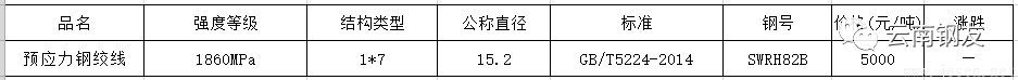 22日昆明市場預應力鋼絞線價格暫穩觀望,具體如下(抄牌):