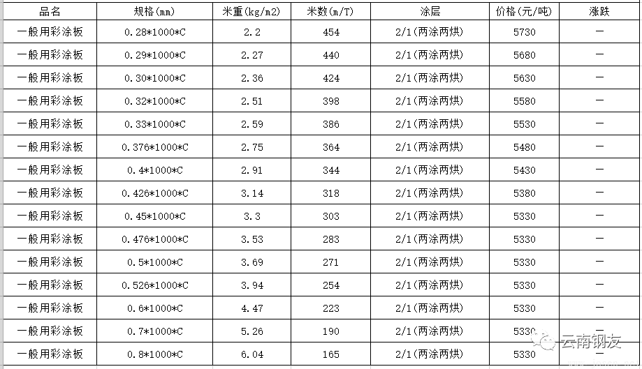 22昆明市場彩涂卷價暫穩觀望,具體如下(昆明華信廠價):