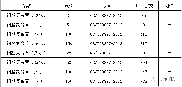 22日昆明市場鋼塑復合管價格暫穩觀望,具體如下(支):