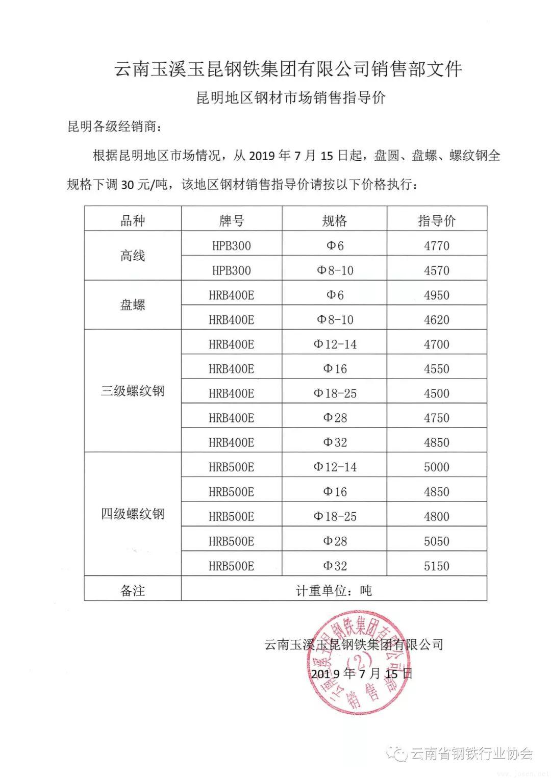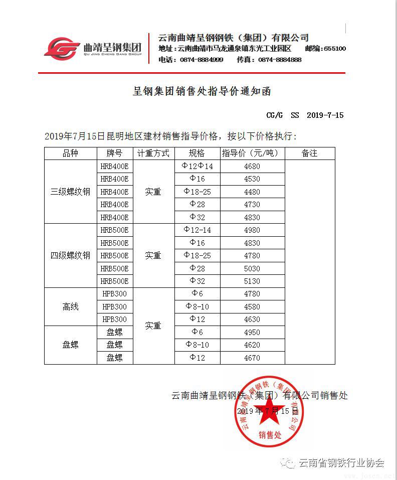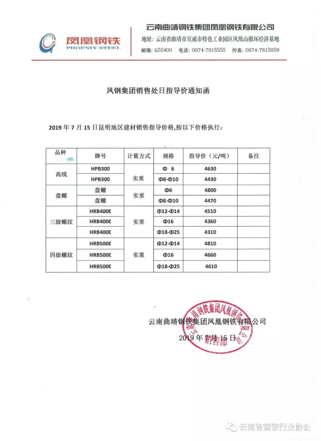 3、以上表列產品鋼廠/產地為:昆明華信/昆明;