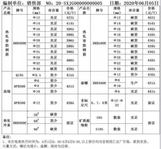 從6月6日9時起,首鋼長治對線材、盤螺價格統(tǒng)一下調(diào)30元/噸,其余品種價格持穩(wěn),結(jié)算以電商系統(tǒng)中實提時間為準(zhǔn)。