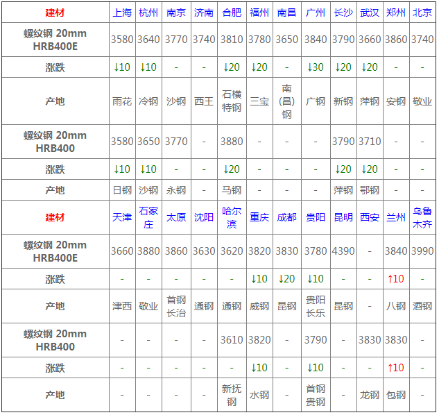 6月11日建材價(jià)格:繼續(xù)下跌10-20元/噸;