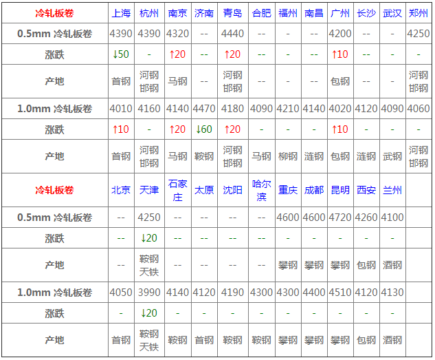 6月11日冷軋板卷價(jià)格:漲跌互現(xiàn);