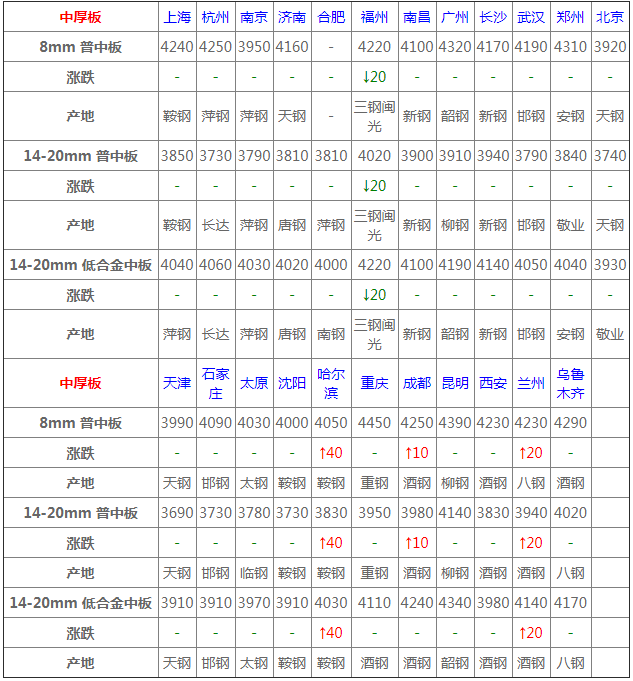普陽(yáng)中厚板價(jià)格下調(diào)10元/噸