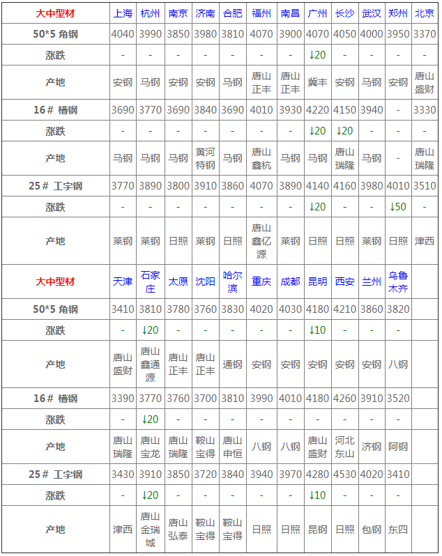 6月11日型材價(jià)格:趨弱調(diào)整10-30元/噸;