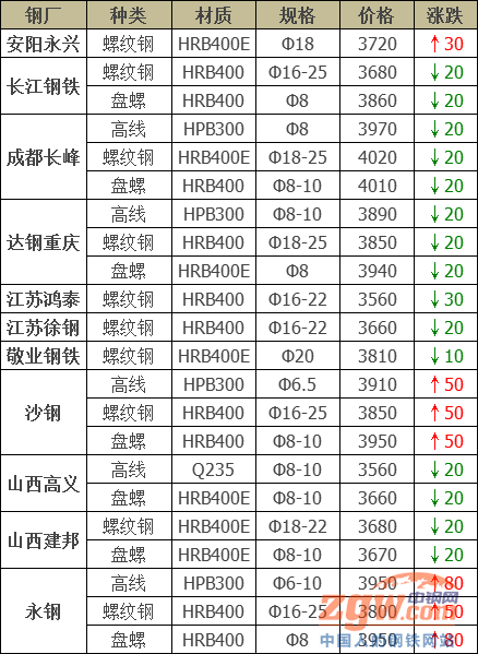 安陽(yáng)永興優(yōu)鋼價(jià)格上調(diào)50元/噸