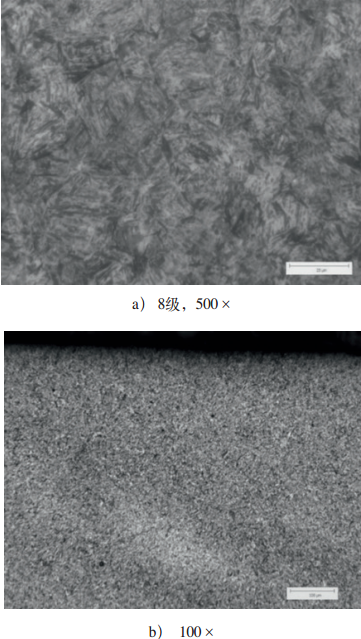 在圖7a中,測量了結束區域最熱部分表面的晶粒度。根據ASTM E112標準,平均晶粒度為8.5級。這種晶粒度與穩定掃描區域測量的晶粒度相當。根據ASTM E112標準,在起始區和結束區發現最大晶粒度為8級。在掃描速度發生變化的端部區域位置檢查顯微組織,以驗證奧氏體是否完全轉變為馬氏體。在圖7b中,顯示的馬氏體顯微組織中沒有可見貝氏體或非馬氏體相變組織。