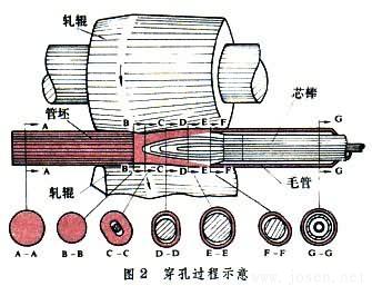 ①在穿孔機上將錠或坯穿成空心厚壁毛管;